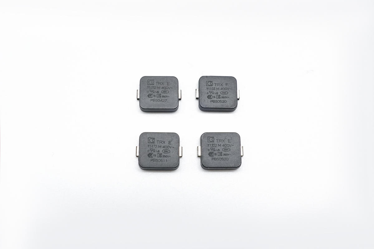TGY1222M、TGY1332M、TGY1472M、TGY1103M四款貼片Y1安規電容產品,外觀十分小巧,容量分別為 2200pF、3200pF、4700pF、10000pF,誤差±20%。