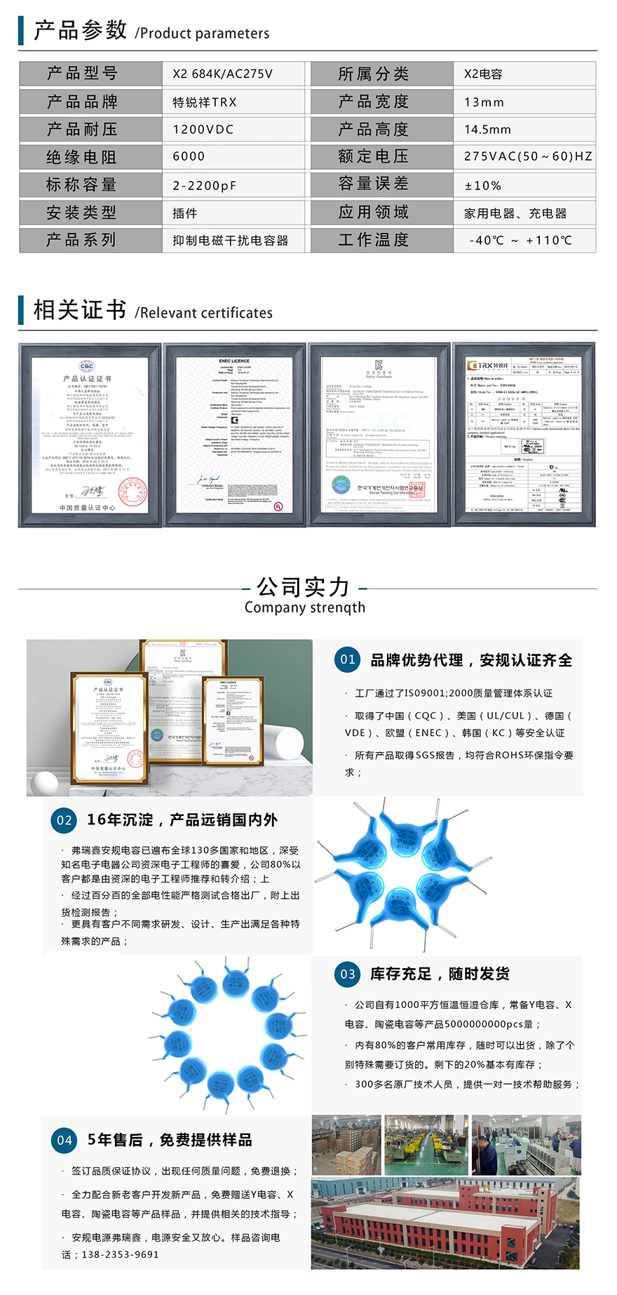 產(chǎn)品應(yīng)用:①適用于電子設(shè)備的電源電路噪音壓制電路中 ②可以用作天線耦合跨接和旁路電路中