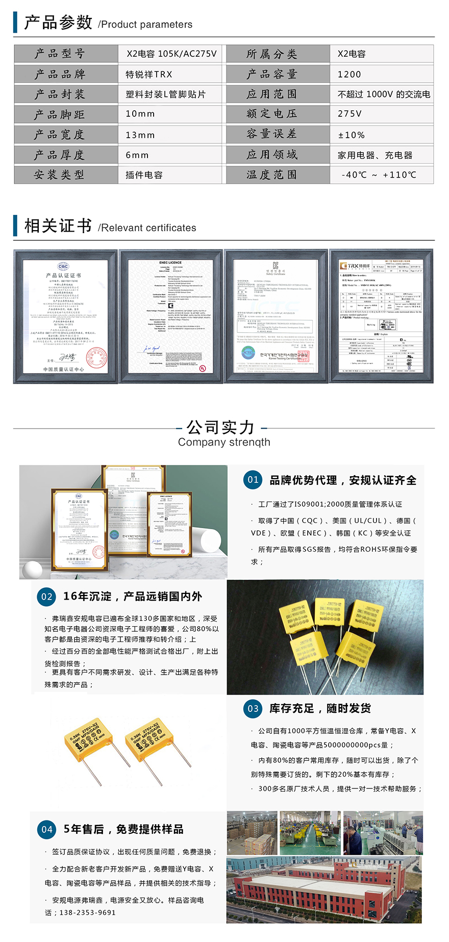 產(chǎn)品應(yīng)用:①適用于電子設(shè)備的電源電路噪音壓制電路中 ②可以用作天線耦合跨接和旁路電路中